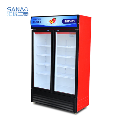 Refrigerador comercial para supermercado, refrigerador de bebidas con puerta de vidrio, escaparate vertical